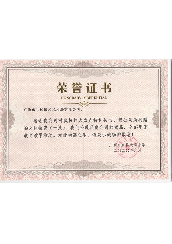 捐赠荣誉证书2